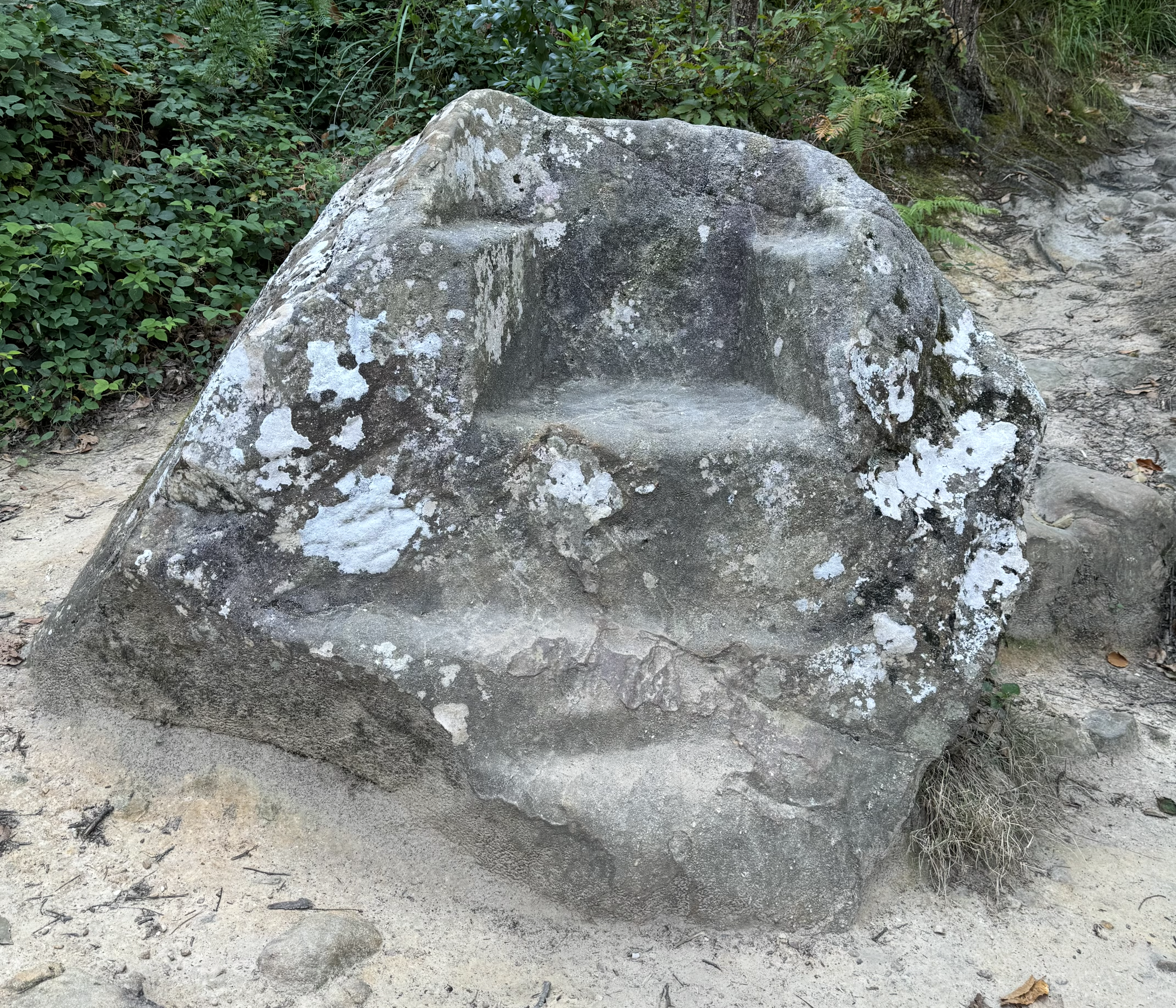 High above the thermal village of Rennes-les-Bains, a granite seat carved into the forest floor has drawn seekers for centuries. Known to locals as the Devil's Armchair—a name given by the Church to sites it could not suppress—contemporary practitioners call it the Throne of Isis, approaching it as an initiatory seat of power for feminine mysteries. The adjacent sacred spring and position within a landscape of geometric alignments mark it as a place where something persists.